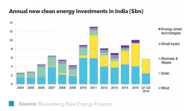 印度绿色债券仍受欢迎:2016年,印度银行和电力生产商共为可再生能源项目发行了价值15亿美元的债券。为了满足日益增长的资金需求,印度独立电厂开始寻求更多创新融资方案,比如Masala债券/贷款(即在海外市场进行卢比融资)等。
