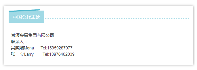 誉颁会展作为该展中国总组展方,携手国内参展的企业有:广东西电、福建奥斯福、奥特曼、天津雷沃等发电机组品牌制造商;江苏银河、江苏鸿光、江苏新金磊等专业杆塔生产商;浙江日升、长高集团等输配电设备研发制造商;佛山浦斯电子、宁夏中科等优质防雷代表企业;佛山照明电器和阳光照明等国内LED龙头企业。同时,此次誉颁会展还携手湖南商务厅,汇集了以醴陵东方电瓷、阳东电瓷等为代表的5家醴陵电瓷产业密集地企业展商。