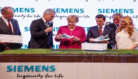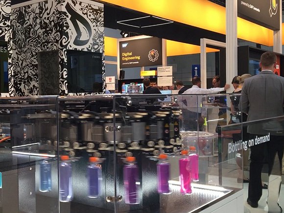 开幕式后,西门子CEO凯飒(Joe Kaeser)亲手将一双定制的阿迪达斯白色跑鞋送给默克尔。阿迪达斯希望为每个用户生产定制化运动鞋,这一愿景借助智能工厂SPEEDFACTORY、再通过西门子的“数字化双胞胎”(Digital Twin)得以实现。西门子股份公司管理委员会成员何睿祺(Klaus Helmrich)指出,这一合作的目的,是“把前沿的数字化解决方案和工业制造结合起来”、“把虚拟的生产环境和现实世界结合起来”,从而实现个性化的大规模生产。