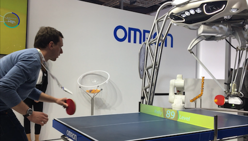 机器人在工业上越来越广泛的应用是汉诺威多届以来的亮点。今年展出的机器人更强调人机协作。欧姆龙研发的这款机器人乒乓球教练Forbheus,在往年的基础上加入了更多人机协作的元素,通过更加精准的传感器来判断出选手的发球、回击,甚至可以还可预判选手的水平和战术。展会主办方德意志会展公司董事会主席约亨·科克勒在接受媒体采访时表示,今年展会发出的一个重要信息是“以人为中心”,人类不会被工业辅助机器人取代,相反,它们将把人类从无聊的工作中解放出来,让工作变得更加简单。