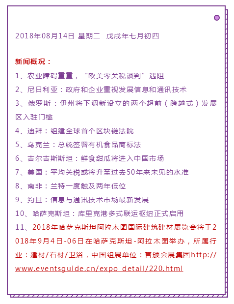 来源:首页 > 参展攻略 > 国际市场 >最新资讯:尼日利亚、俄罗斯、迪拜、乌克兰、约旦、哈萨克斯坦库里克港多式……