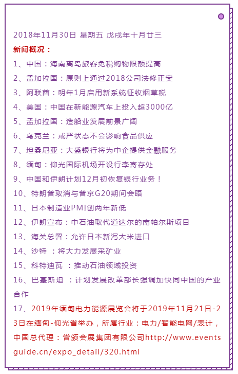 来源:首页 > 参展攻略 > 国际市场 >最新资讯:孟加拉国、阿联酋、美国、乌克兰、缅甸、巴基斯坦计划发展改革……